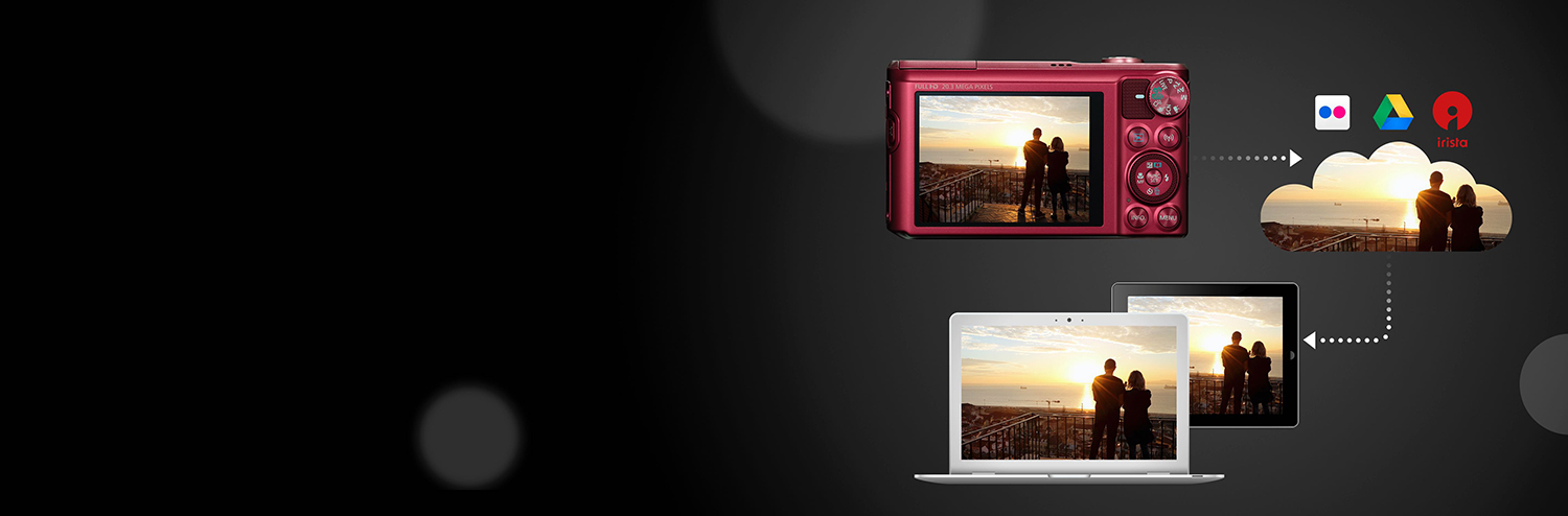 Wi-Fi* ja dünaamiline lähiväljaside lasevad teil vaid ühe puudutusega ühilduvate nutiseadmetega ühenduse luua ja jagada. Jäädvustage suurepäraseid võtteid loomariigist või selfie'sid, kasutades juhtmevaba kaugjuhtimisega pildistamise funktsiooni, ning kasutage GPSi mobiili kaudu, et pidada järge selle üle, kus pildid tehti. Piltide sünkroonimise funktsioon aga varundab automaatselt teie uued pildid pilveteenustesse nagu Canoni irista.